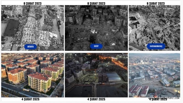 Depremin hemen sonrası ve afetin ilk yılında görüntülenen noktaların 2025'teki durumları havadan aynı açıdan kayıt altına alındı.