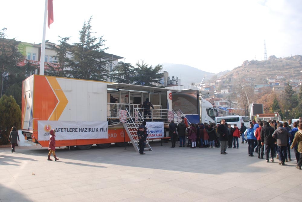 Afet ve Acil Durum Yönetimi Başkanlığı (AFAD) tarafından olası bir depremde vatandaşların ne yapması gerektiğini anlatmak için hazırlanan deprem tırı Tokat’a geldi. Cumhuriyet Meydanı’nda konuşlanan gezici deprem simülasyon eğitim tırında, deprem bilincini artırmak ve depremlere karşı nasıl hazırlıklı olunacağını göstermek amacıyla başta öğrenciler olmak üzere vatandaşlara uygulamalı olarak deprem eğitimi verildi. Tokat AFAD Müdürlüğü ile İl Milli Eğitim Müdürlüğü işbirliğinde düzenlenen eğitim programı kapsamında çocuklara deprem anında yaşananlar anlatıldı. Simülasyon tırında 7.2’lik Düzce ve Van depremi ile 6.8’lik Bingöl depremleri öğrencilere yapay olarak yaşatıldı. Deprem kuşağında yer alan Tokat’ta öğrenciler ‘çök, kapan, tutun’ hareketini yaparak deprem anında neler yapması gerektiğini öğrendi.