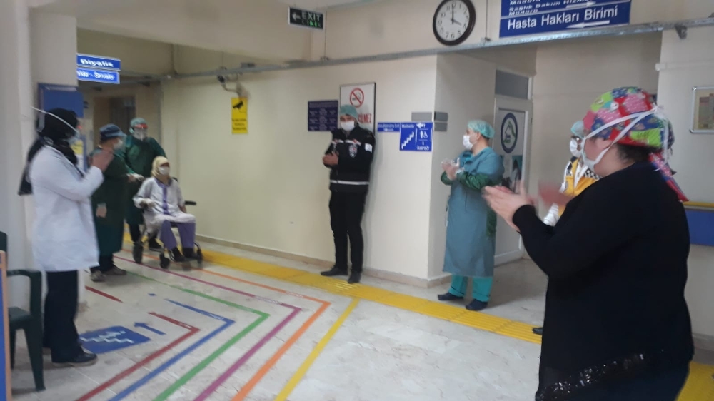 10 günlük tedavi sonrası hasta bugün sağlık çalışanlarının alkışları eşliğinde hastaneden
