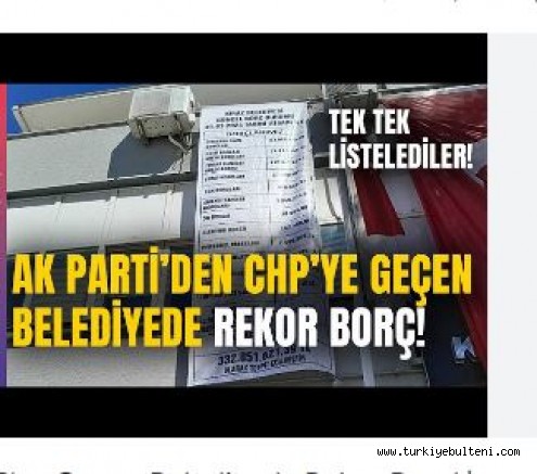 CHP Genel Başkanı Özel, Türkiye'deki en borçlu belediyelerin 31 Mart Yerel Seçimleri’nde AK Parti’den CHP’ye geçen belediyeler olduğunu söyledi. SGK'ya en borçlu 5 belediyenin sırayla Bursa, Sakarya, Ordu, Balıkesir ve Denizli olduğunu iddia eden CHP Genel Başkanı "Bakın en borçlu beş belediye, beşi de AK Parti’den aldığımız belediyeler. Şimdi kendi ödemedikleri parayı bizden kesmeye kalkıyorlar. Bu sayede çöpler toplanamasın istiyorlar. İstiyor ki toplu taşıma aksasın. Şunu söyleyelim, köpürsen de neye başvurursan başvur bir yolunu bulacağız bu hizmeti yapacağız, milletin gönlünü fethedeceğiz ve o iktidarı senin elinden alacağız.” ifadelerini kullandı.