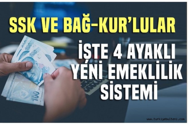 Son dakika haberleri...Türkiye'de yeni yılla birlikte SSK ve Bağ-Kur'luları yakından ilgilendiren emeklilik sisteminde köklü değişiklikler olacak. Yeni sistemde primler eşitlenerek standart bir uygulmaya geçilecek. EYT yasası ile birlikte de yeni mağduriyetler olmadan sorun çözülecek.