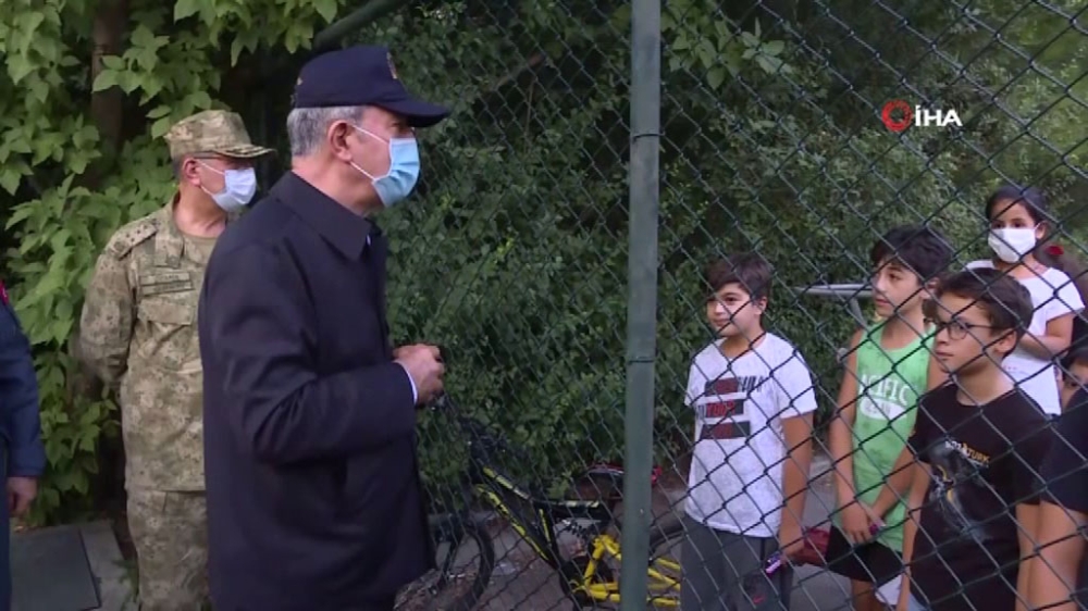 Milli Savunma Bakanı Hulusi Akar, beraberinde Genelkurmay Başkanı Orgeneral Yaşar Güler, Kara Kuvvetleri Komutanı Orgeneral Ümit Dündar, Deniz Kuvvetleri Komutanı Oramiral Adnan Özbal ve Hava Kuvvetleri Komutanı Orgeneral Hasan Küçükakyüz ile İzmir’deki ziyaretleri kapsamında dün Hava Eğitim Komutanlığında inceleme ve denetlemelerde bulundu. Bakan Akar’ın kendisini karşılayan tören mangasını selamlaması sırasında renkli görüntüler oluştu. Tören yerinin yakınındaki bir parkta oyun oynayan çocuklar, Akar’a asker selamı verdi. Bunu fark eden Bakan Akar, parka giderek çocuklara asker selamı verdi ve bir süre sohbet etti. Çocukların maskesiz bir şekilde oyun oynadığını gören Akar, "Korona virüs tehlikeli. Kendimizi, annemizi, babamızı, arkadaşlarımızı koruyacağız, dikkatli olacağız. Devamlı ellerimizi yıkayacağız, maskeyi takacağız ve yan yana gelmeyeceğiz. Bu dönemde biraz uzak duracağız" uyarısında bulundu.