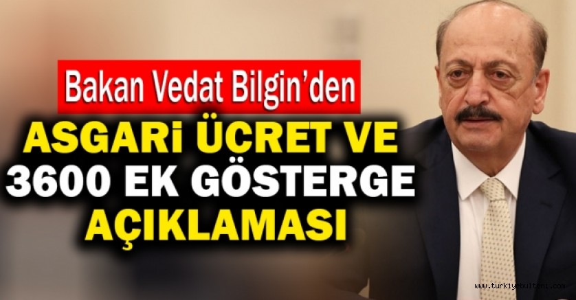 Çalışma ve Sosyal Güvenlik Bakanı Vedat Bilgin yaptığı açıklamada, ''Toplumun, işçilerin beklentilerini karşılan ciddi bir asgari ücret artışı yapacağız. Düşük gelirli asgari ücretle çalışanlar için bir bayram havası yaratacaktır. Bunu şimdiden müjdelemek isterim. Asgari ücretle çalışan bazen 15 ila 20 milyon çalışan işçi var deniyor. Bu rakamlar doğru değil. Yaklaşık 6 milyon civarında asgari ücretli işçimiz var.'' ifadelerini kullandı.