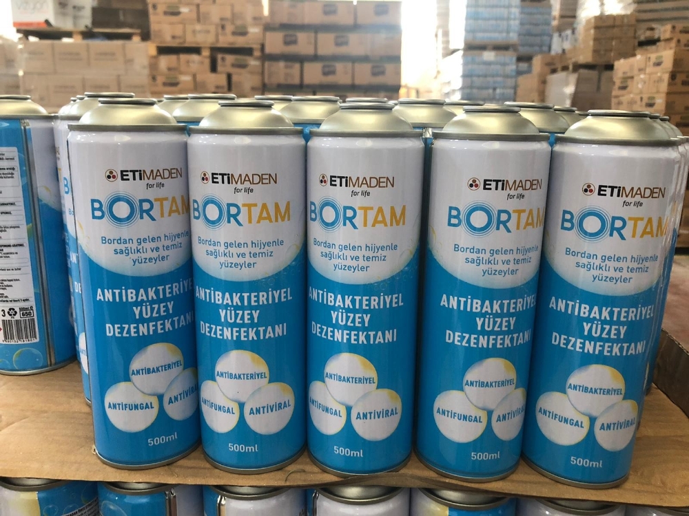 Bireysel tedbirlerin yanında Covid-19 salgınının yayılım hızının ve bulaş riskinin en aza indirilmesinde umumi ve kişisel alanlarda, uygun dezenfektanlarla yapılan ortam ve yüzey dezenfeksiyonunun önemli olduğunu vurgulayan Dönmez, “Bor madeninin antibakteriyel ve antiviral özelliği biliniyor. Bor bileşiklerinin virüslere karşı etkili oldukları bilimsel çalışmalar ile gösterilmiştir. Ulusal Bor Araştırma Enstitüsü BOREN’de; el dezenfektanlarının yanı sıra hava dezenfektanları üzerine de çalışmalar yürütülmekteydi. İlk etapta el dezenfektanı BOREL piyasaya çıktı. Devam eden Ar-Ge çalışmaları sonucu etil alkol, TEG, borik asit ve lavanta yağından oluşan BORTAM’ın laboratuvar süreçlerini tamamladık. BORTAM, antibakteriyel, antifungal ve antiviral testleri başarıyla geçti. Standartların belirlemiş olduğu antimikrobiyal etki değerlerine göre elde edilen sonuç istenilen değerlerin çok üzerinde. Sertifikasyon süreçlerini de tamamlayan BORTAM, üretime hazır” dedi.