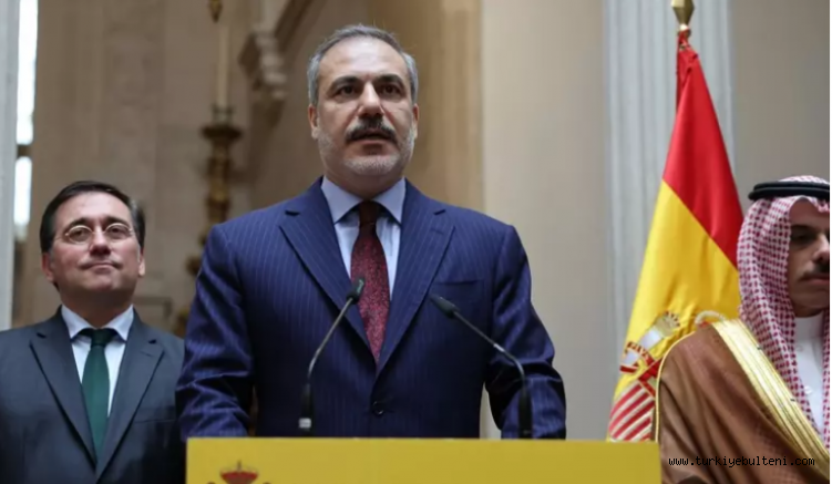Bakan Fidan, İspanya'nın Filistin devletini tanıma kararı vesilesiyle ilettiği davet çerçevesinde, İslam İşbirliği Teşkilatı (İİT) ve Arap Birliğinin oluşturduğu Gazze Temas Grubu üyeleriyle İspanya Başbakanı Pedro Sanchez ile Madrid'de bir araya gelmesinin ardından düzenlenen ortak basın toplantısında konuştu.