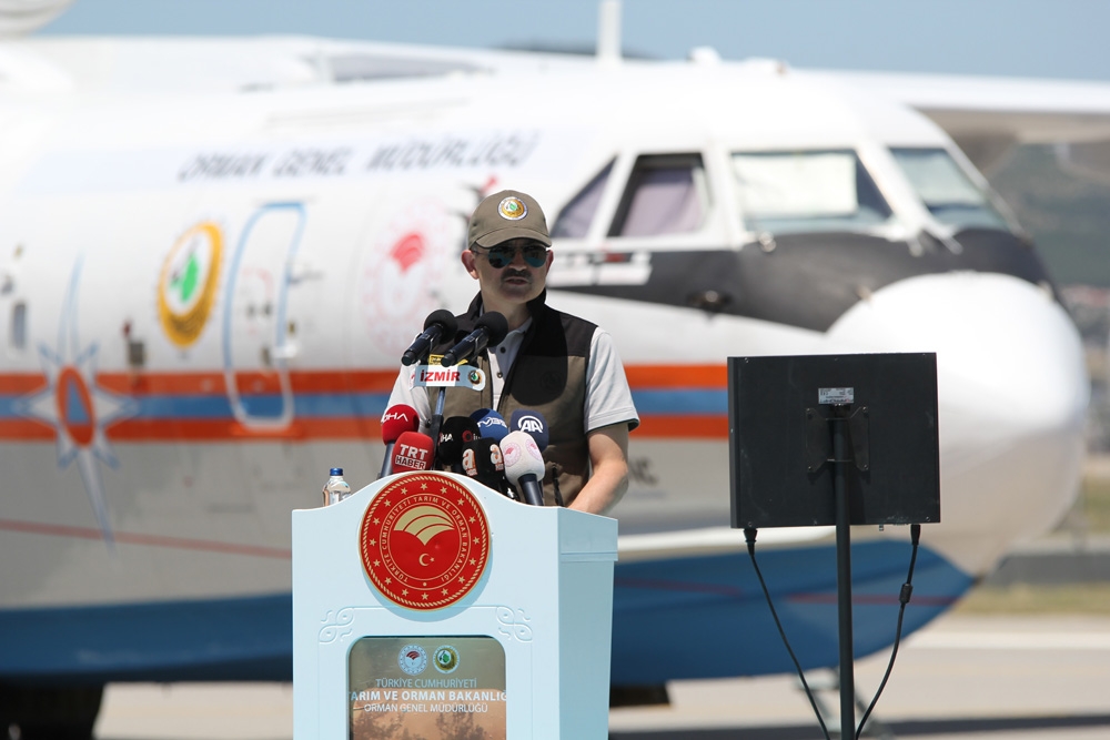 Türkiye’nin orman yangınlarına karşı müdahale konusunda dünyanın lider ülkesi olduğunu vurgulayan Pakdemirli, orman yangınlarıyla mücadele konusunda Türkiye’nin hava araç gücünün 2 adet amfibi uçak, 1 adet yönetim uçağı, 27 adet su atar helikopter, 6 adet idari helikopter ve 1 adet de İHA’dan oluştuğunu söyledi.