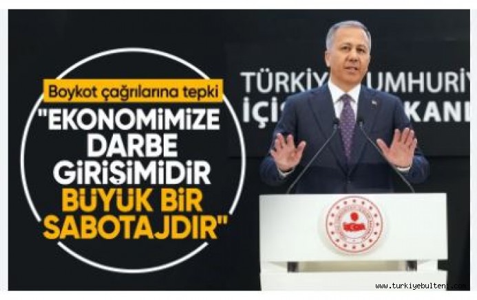 İçişleri Bakanı Ali Yerlikaya, İstanbul Büyükşehir Belediyesine (İBB) yönelik yolsuzluk soruşturması sonrası başlatılan boykot çağrılarına sert tepki gösterdi. Yerlikaya, ''Bu çağrı ekonomik bağımsızlığımıza yönelik bir sabotajdır. Bu boykot çağrısı, binlerce insanın ekmeğiyle oynamak demektir! Bu çağrı milli ekonomimize suikasttır! Kendi insanımızın ekmeğini küçültmektir. Ekonomimize bir darbe girişimidir!'' ifadelerini kullandı.