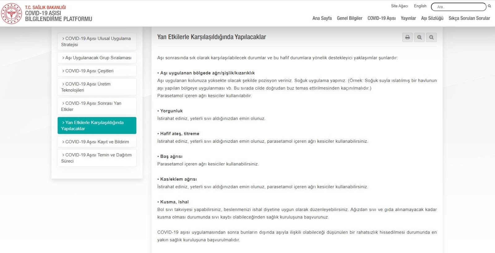 Sağlık Bakanlığı Covid-19 Aşısı Bilgilendirme Platformu üzerinden vatandaşlar bilgilendirilmeye devam ediliyor. Platformda, uygulanan Covid-19 aşıları ile ilgili oluşabilecek yan etkiler hakkında da bilgiler yer alıyor. Buna göre ise aşı sonrasında sık olarak karşılaşılabilecek durumlar ve bu hafif durumlara yönelik destekleyici yaklaşımlar şöyle: