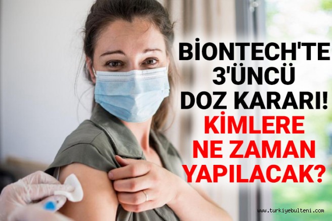 Konuyla ilgili Türkiye’de de çalışmalar hız kazandı. Sağlık Bakanlığı’nca Bilim Kurulu gündemine alınan “BioNTech’lilere 3’üncü doz aşının kimlere ne zaman yapılacağı” milyonlarca vatandaştan alınan antikor sonuçlarına göre açıklanacak. Buna göre, aşılama zamanının yaş, cinsiyet ve bağışıklığı baskılanmış kişilerde değişiklik gösterebileceği öğrenildi. Çalışmayla, iki doz Sinovac, 1 doz BioNTech aşısı olanların da yeniden ne zaman aşı olacakları belirlenecek.