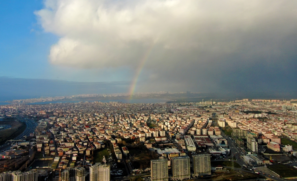 Sabah saatlerinde yer yer etkili olan yağmur sonrası çıkan güneş gökkuşağının oluşmasına neden oldu. İstanbul semalarının manzarasını süsleyen gökkuşağı izleyenleri kendine hayran bıraktı. Küçükçekmece Gölü manzarasında oluşan gökkuşağı havadan çekilen görüntülerde kartpostallık kareler oluşturdu. Oluşan gökkuşağı yaklaşık 15 dakika kadar seyredilebildi. Kimi vatandaşlar gökkuşağını fark etmezken kimileri de İstanbul semalarında oluşan manzaranın keyfini çıkartarak o anları cep telefonları ile kaydetti. Şehrin üstüne gelen kara bulutlar ise havadan görüntülendi.