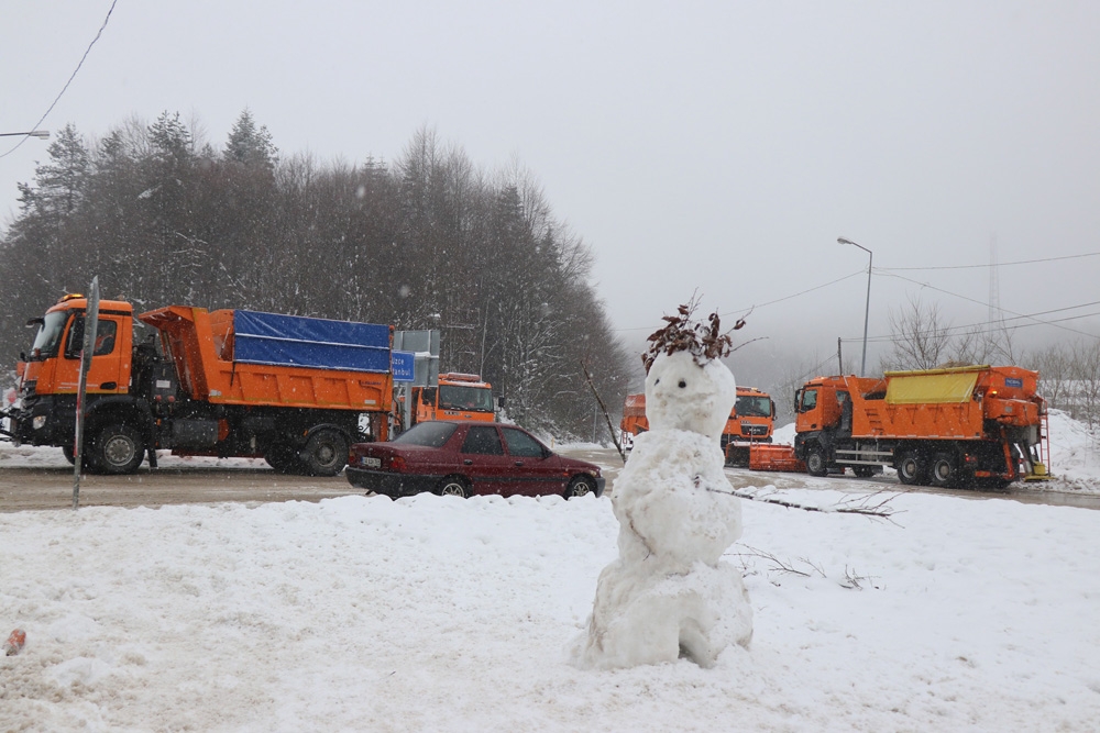 Düzce’de öğle saatlerinde başlayan kar yağışı, D-100 karayolu Bolu Dağı kesiminde etkisini sürdürüyor. Yüksek kesimleri beyaz örtüyle kaplayan kar yağışı, D-100 karayolunun Yumrukaya, Abant Kavşağı, Elmalık, Bakacak, Seymenler, Karanlıkdere, Bıçkıyanı, Sarıçökek bölgeleri ile Bolu Dağı Tüneli’nde şiddetini artırarak devam ediyor. Yeşil alanlarda kar kalınlığının 50 santimetreyi bulduğu Bolu Dağı mevkiinde küreme ve tuzlama çalışmalarını aralıksız sürdüren karayolları ekipleri, güzergahların önemli kısımlarında hazır olarak bekletiliyor. Sürücüler, yağış ve gizli buzlanma nedeniyle ışıklı tabelalar ve polis ekipleri tarafından hız yapmamaları ve takip mesafelerini korumaları yönünde uyarılıyor.