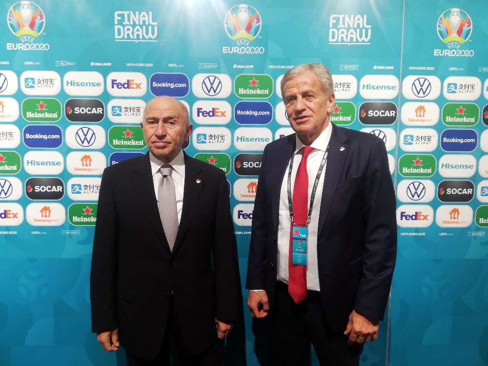 Romanya’nın Başkenti Bükreş’te yapılan EURO 2020 Avrupa Şampiyonası kura çekiminin ardından basın mensuplarına açıklamalarda bulunan Türkiye Futbol Federasyonu Başkanı Nihat Özdemir ve Türkiye Futbol Federasyonu Başkan Vekili Servet Yardımcı, basın mensuplarına açıklamalarda bulundu. Turnuvanın açılış maçında ay-yıldızlıların İtalya ile karşılaşacağının hatırlatılması üzerine sözlerine başlayan TFF Başkanı Nihat Özdemir, “Prestij maçı ve bizim için çok önemli. Açılış maçını bütün dünya izleyecek. Türk Milli Takımı’nı izleyecekler. Gruplarda da hep ismimizden bütün dünyaya bahsettirdik. Tarihimizde hiç yenemediğimiz Fransa’yı Konya’da yenerek grupta iddialı hale geldik, Paris’te de rövanşı vermedik. İtalya’yı da geçmişimizde resmi maçlarda yenmedik diye tahmin ediyorum, belki açılış maçında yenmek kısmet olabilir. Takımımıza ve teknik direktörümüze güveniyoruz. İnşallah ilk maçtan iyi bir netice alabiliriz diye ümit ediyorum. Arkasından iki maçımızı hepimizin her zaman konuştuğu gibi ‘İki millet tek devlet’ dediğimiz Azerbaycan’ın başkenti Bakü’de oynayacağız. Bakü’yü ayrı bir şehir olarak düşünmüyorum, Türkiye’nin bir ili gibi düşünüyorum. Orada iki önemli maçımız var, Galler ve İsviçre ile. Ana hedefimiz burada gruptan çıkmaktır, ondan sonra da Allah yardım eder, ‘Allah Kerim’ diyelim ve yolumuza devam edelim” ifadelerini kullandı.