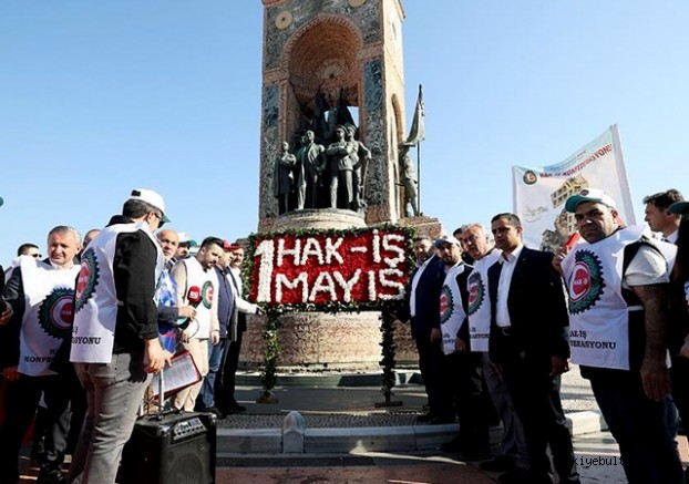 Türkiye İşçi Sendikaları Konfederasyonu (Türk-İş), 1 Mayıs Emek ve Dayanışma Günü dolayısıyla Taksim Cumhuriyet Anıtı'na çelenk sundu.