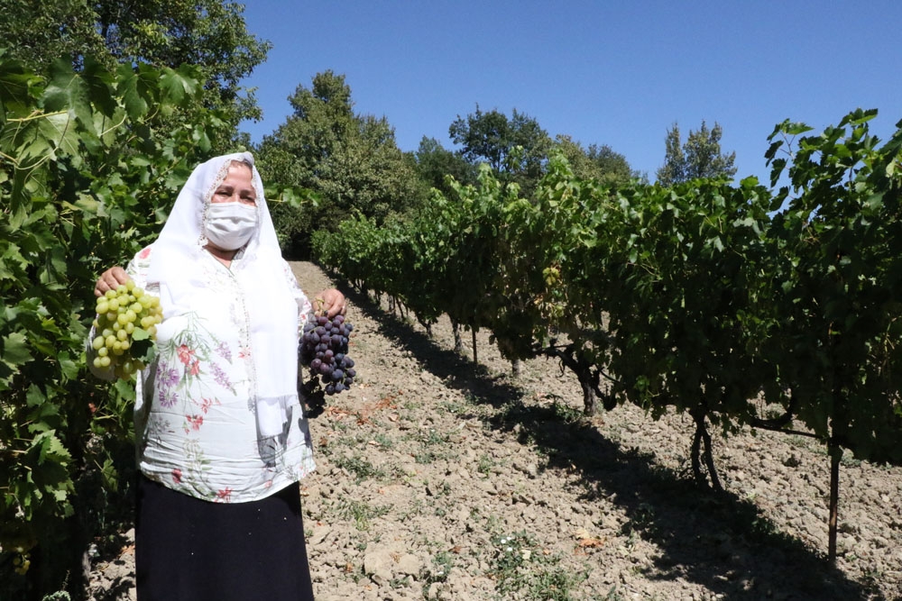 Çok meşakkatli bir iş olduğunu aktaran Özkan, "Şubat ayında budama ile başlıyor. Bağlaması, ayırtması, aralarındaki fazla yolluklarını almak. Yetiştirdiğin zamanda yorgunluğun gidiyor. Devletin teşvikleri ile köyümüzde bağcılık yeniden canlandı ve ayaklandı. Bizde merak ettik yapıyoruz. İnşallah torunlarımızda yapar. Biz 13-15 yıldır yapıyoruz. Burası meyvelikti. Suyumuz olmadığı için bağcılığa döndük. Arkamda 3 tane torunum var. İnşallah onlarda devam ettirir. Onlara toprağı sevdirmeyi aşılamaya çalışıyorum" diye konuştu.