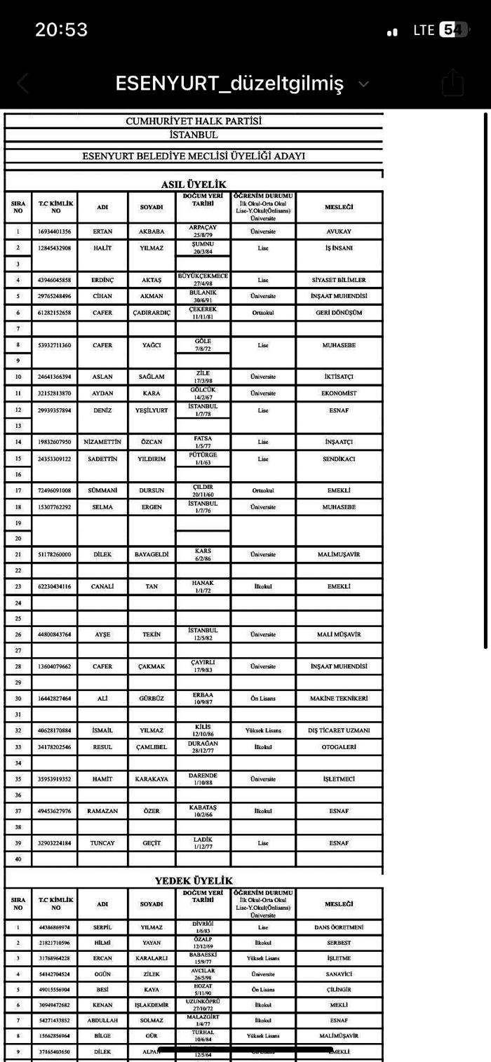 CHP Esenyurt İlçe Başkanı Hüseyin Ergin tarafından hazırlanan listeye son anda müdahale geldi. CHP, HDP/DEM için 40 kişilik meclis üyesi listesinin 17 sırasını ayırdı. DEM Parti için listenin 3, 7, 9, 13, 16, 19, 20, 22, 24, 25, 27, 29, 31, 34, 36, 38 ve 40'ıncı sıraları boş bırakıldı. HDP/DEM tarafından İlçe Seçim Kurulu'na verilen listede bulunan isimlerin boş bırakılan yerlere yazıldıktan sonra listenin son şeklini alacağı öğrenildi. 23 Şubat saat 17.00'ye kadar listenin son şeklini alması gerekiyor. Listeye göre HDP/DEM Parti'nin meclise en az 7 üye sokması bekleniyor.