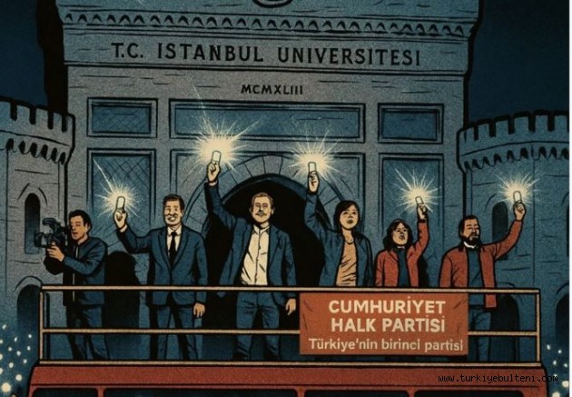 CHP Grup Başkanvekili Ali Mahir Başarır'ın miting sonrası yaptığı paylaşımdaki görselde, İstanbul Üniversitesi Beyazıt Kampüsü'nün girişindeki kapıda yer alan Fetih Suresi'nin 3. ayeti ve Sultan Abdülaziz'in Tuğrası'nın silindiği görüldü.