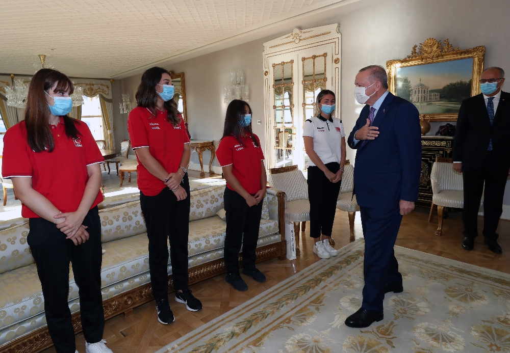 Cumhurbaşkanı Erdoğan, CEV U19 Genç Kızlar Avrupa Şampiyonası finalinde Sırbistan’ı yenerek şampiyon olan Türkiye 19 Yaş Altı Kız Voleybol Milli Takımı’nı bugün akşam saatlerinde kabul etti. Kabul, Vahdettin Köşkü’nde gerçekleşti.