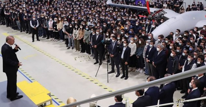 Hadımköy'deki Baykar Savunma üretim tesisindeki ziyarette Erdoğan, Baykar çalışanlarına da hitap etti.