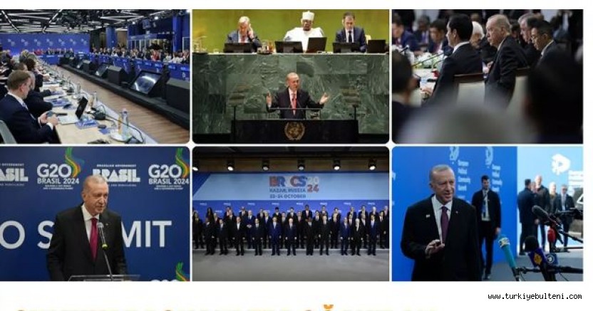 Cumhurbaşkanı Erdoğan, 2024 yılında da devam eden İsrail'in Filistin'e yönelik saldırıları başta olmak üzere bölgesel ve küresel sorunlara çözüm üretmek için diplomasi trafiği yürüttü. Erdoğan, gerek resmi ziyaretler gerek zirveler vesilesiyle 17 ülkeye ziyarette bulundu, 18 ülkenin devlet ve hükümet başkanını ağırladı.
