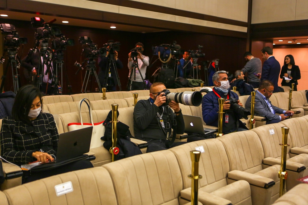 Yaklaşık 40 basın mensubunun izleyeceği toplantı öncesi gazeteciler de kendilerince önlemler aldı.