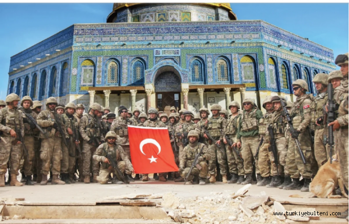 Cumhurbaşkanı Erdoğan'ın bu sözleri sonrası ise yapay zekayla hazırlanan, Türk askerinin postallarıyla Mescid-i Aksa önündeki fotoğraf, sosyal medyada en fazla paylaşılanlardan biri oldu.