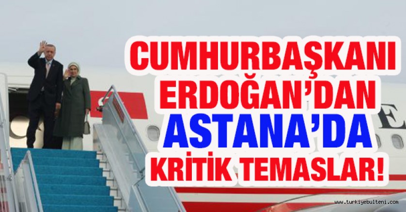 Erdoğan ile eşi Emine Erdoğan, Dışişleri Bakanı Mevlüt Çavuşoğlu, Tarım ve Orman Bakanı Vahit Kirişci, Ticaret Bakanı Mehmet Muş, Ulaştırma ve Altyapı Bakanı Adil Karaismailoğlu, MİT Başkanı Hakan Fidan, Savunma Sanayii Başkanı İsmail Demir, İletişim Başkanı Fahrettin Altun ve Cumhurbaşkanlığı Sözcüsü İbrahim Kalın da Astana'ya gitti.