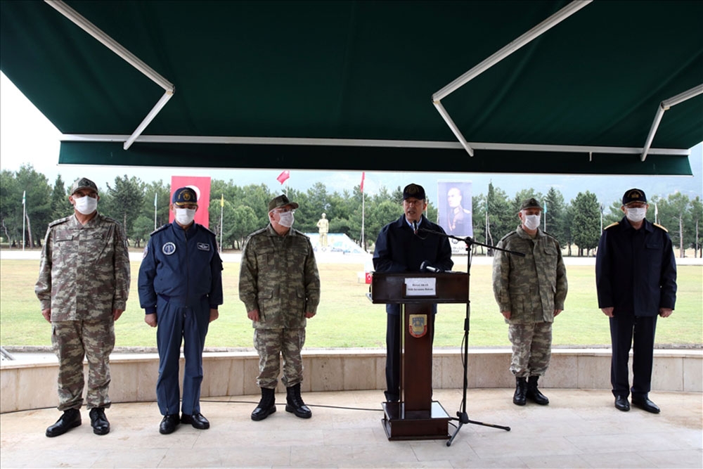 Milli Savunma Bakanı Hulusi Akar’ın beraberinde Genelkurmay Başkanı Orgeneral Yaşar Güler, Kara Kuvvetleri Komutanı Orgeneral Ümit Dündar, Hava Kuvvetleri Komutanı Orgeneral Hasan Küçükakyüz ve Deniz Kuvvetleri Komutanı Oramiral Adnan Özbal ile kara, deniz ve hava unsurlarındaki bayram ziyaretleri devam ediyor. Akdeniz Kalkanı Harekatında görev alan TCG Barbaros Fırkateynindeki incelemelerinin ardından Şehit Teğmen Ahmet Tor Kışlası’na geçen Bakan Akar ve komutanların Zeytin Dalı Harekat bölgesi ve İdlib’deki faaliyetlerde önemli görevler alan 39’uncu Mekanize Piyade Tugay Komutanlığı personeliyle bayramlaşması sırasında Cumhurbaşkanı Sayın Recep Tayyip Erdoğan da telefonla Mehmetçiğe hitap etti. Mehmetçiğin Ramazan Bayramını kutlayan Erdoğan, şunları söyledi: