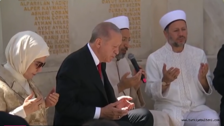 15 Temmuz Şehitler Anıtı'na çiçek bırakan Cumhurbaşkanı Erdoğan daha sonra şehitler için Kuran-ı Kerim okudu.