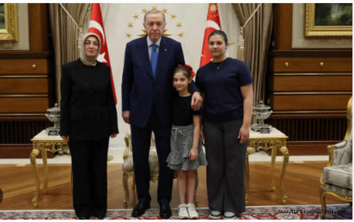 Cumhurbaşkanı Recep Tayyip Erdoğan, eski Ülkü Ocakları Genel Başkanı Sinan Ateş'in eşi Ayşe Ateş'i ve kızlarını Beştepe'deki Cumhurbaşkanlığı Külliyesi'nde kabul etti.