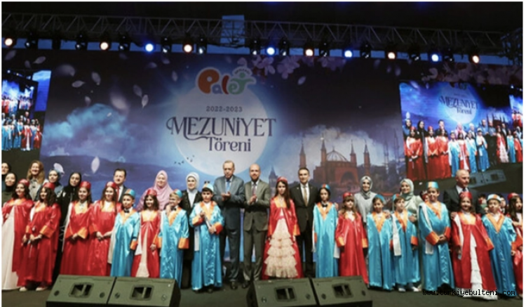 Cumhurbaşkanı Erdoğan torununun mezuniyet törenine katıldı. Palet Okullarının mezuniyet töreni, Mecidiye Kasrı'nda düzenlendi.