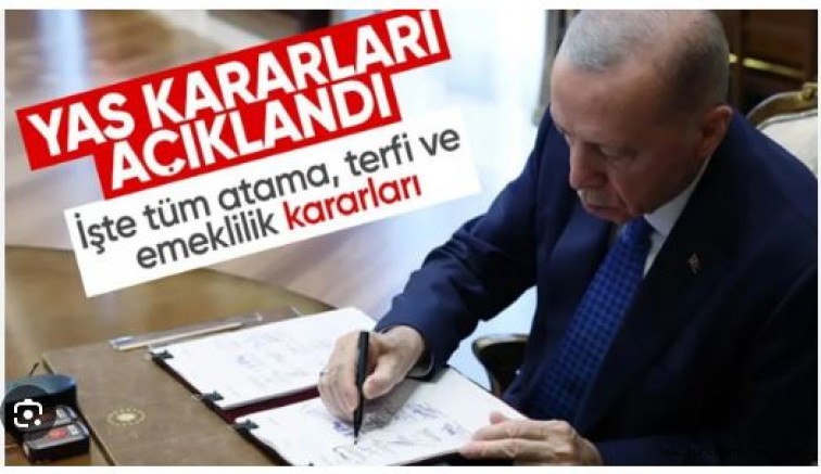 Bir üst rütbeye yükseltilen General-Amiral ve Albaylar, görev süresi 1 yıl uzatılan General ve Amiraller ile Yaş Haddi Nedeniyle Emekliye Sevkedilen Generaller ile ilgili liste Cumhurbaşkanlığı resmi internet sitesi http://tccb.gov.tr'de yayınlanacaktır.