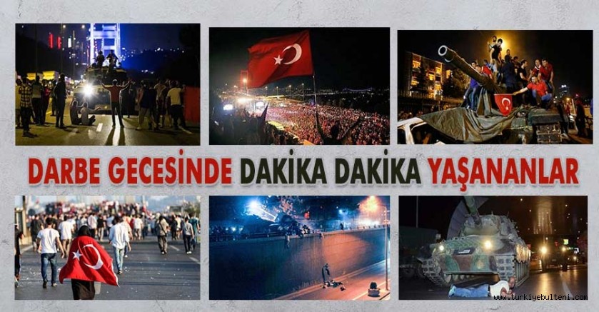 Akıncı Üssü'nden havalanan F-16'lar Ankara üzerinde alçak uçuşa başladı. Askeri hareketliliğe ilişkin gelişmeler, haber kanallarına saat 22.28'de yansıdı. Televizyonlar, İstanbul Boğaziçi ve Fatih Sultan Mehmet köprülerinden geçişlerin askerlerce engellendiğini "son dakika" olarak duyurdu. Dönemin Başbakanı Binali Yıldırım, saat 23.02'de NTV'ye telefonla bağlanarak, "Milleti temsil eden hükümet iş başındadır. Bu kalkışmayı yapanlar, bu çılgınlığı yapanlar, bu kanunsuz eylemin içerisinde olanlar en ağır şekilde bedelini ödeyeceklerdir." dedi. Ankara Cumhuriyet Başsavcılığı, saat 23.05'te darbe girişimine ilişkin soruşturma başlattı.