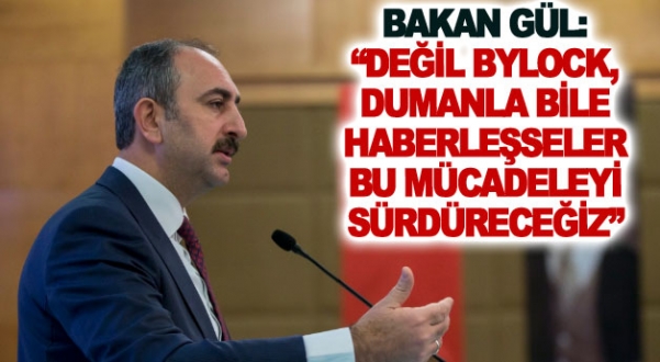 FETÖ ile mücadelenin aynı kararlılıkla devam edeceğini ifade eden Gül, “Geçmiş zamanlarda da ifade ettiğimiz gibi değil Bylock, dumanla bile haberleşseler bu mücadeleyi sürdüreceğiz. Tüm hücrelerine kadar bu mücadele kararlılıkla devam edecek. Bakanlık bünyesinde hem diğer birimlerde çalışıp bakanlıkla ilgili bu konuda FETÖ yapılanması içinde olanlarla ilgili uzun zamandır bakanlığımız idari tüm çalışmaları yapıyordu. Bu çalışmaları hem kolluk, hem başsavcılıklara, ilgili makamlara iletildi. Titiz bir çalışmanın sonunda Adalet Bakanlığı ve diğer birimlerdeki bu sızmalara karşı tespit edilen isimler yargı karşısına çıkarılmıştır. Bu konuda hem idari süreçler de devam edecektir. Büyük bir titizlikle savcılık makamlarıyla işbirliği içinde bu çalışmalar devam etmektedir, devamı da gelecek. Kararlılığımızı herkes görecek. HSK bünyesinde hakim, savcı ve yargı mensuplarına yönelik tüm şikayetler, soruşturmalar, Bylock içinde çıkan yeni isimler, yeni bilgiler soruşturmaya dahil edilmektedir. Bu konuda milletimizin geleceğine kast edenlere karşı asla teyakkuzu elden bırakmadan, tüm üyelerimizle titizlikle çalışmalarımızı sürdürüyoruz. Bu 40 yıllık örgütle mücadelesini 40 günde bitirdik, yine bir rehavete kapılamayız. Bu mücadeleyi hukuk ve deliller çerçevesinde bağımsız yargı mercileri yapacaktır” şeklinde konuştu.