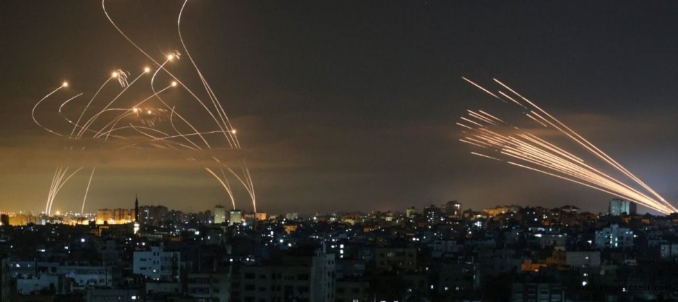 Filistin'den ise İsrail'e doğru atılan füze ya da roketler, Demir Kubbe hava savunma sistemi tarafından engelleniyor.