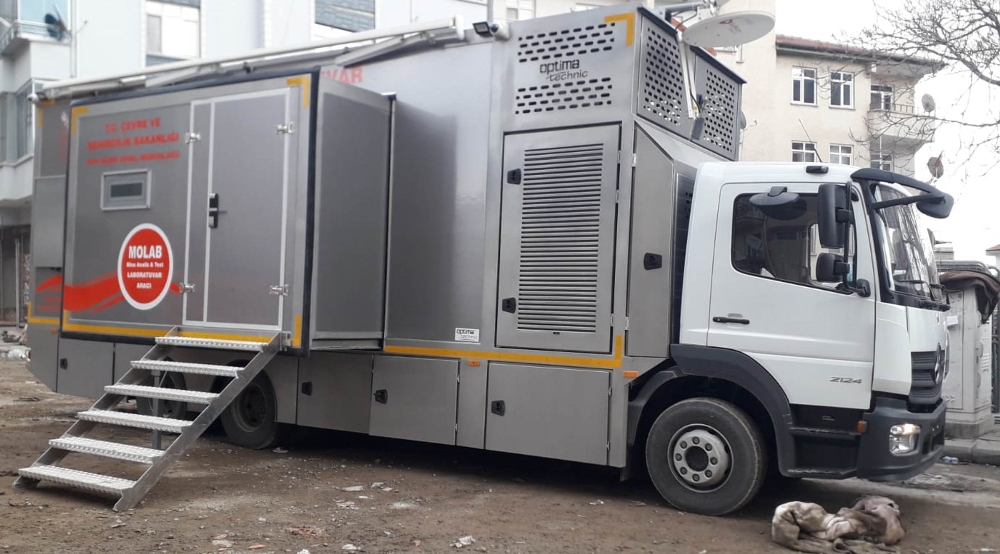 Merkez üssü Elazığ’ın Sivrice ilçesi olan 6.8’lik depremde hasar gören ve çökme riski bulunan yapılar, Çevre ve Şehircilik Bakanlığına ait MOLAB ile kontrol ediliyor. Binaların önüne kurulan lazer tarayıcı cihazı, çökme riski bulunan binaları tespit ederken binaların kolonlarından alınan numuneler ise özel bir cihazın içinde basınca maruz bırakılıyor.