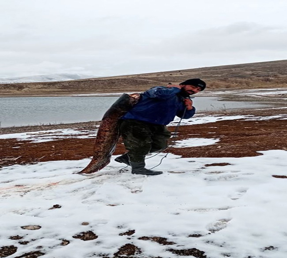 Kayseri’nin Pınarbaşı ilçesinde balıkçılık yapan Murat Ülger, ilçede bulunan Bahçecik Barajı’nda yaklaşık 2 metre uzunluğunda ve 38.5 kilo ağırlığında yayın balığı yakaladı. Murat Ülger, yakaladığı yayın balığı ile barajın kıyısında fotoğraf çekindi.