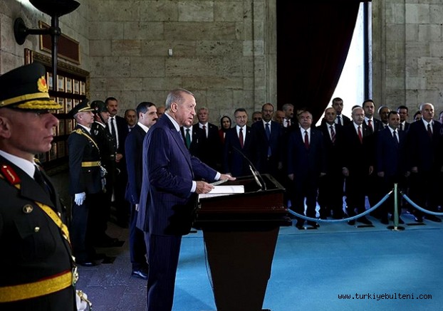 Cumhurbaşkanı Erdoğan, Anıtkabir Özel Defteri'ne şunları yazdı: "Aziz Atatürk; Bugün riyasetiniz altında yürütülen zorlu ve destansı bir mücadelenin ardından kurduğumuz Cumhuriyetimizin 99'uncu yıl dönümünü idrak ediyoruz. Zatıalinizin ve aziz şehitlerimizin emaneti olan cumhuriyetimizi ilelebet payidar kılmak için var gücümüzle çalışıyoruz. Bu tarihi günü ülkemizin ilk yerli elektrikli otomobili olan Togg'un üretim tesisinin açılışını yaparak taçlandırmanın bahtiyarlığını yaşıyoruz. Önümüze çıkartılan engellere aldırmadan içinde bulunduğumuz asrı Türkiye Yüzyılı yapmak ve milletimizi hayalleriyle buluşturmak için mücadelemizi kararlılıkla sürdürüyoruz. Ruhun şad olsun. Cumhuriyet Bayramımız kutlu olsun."