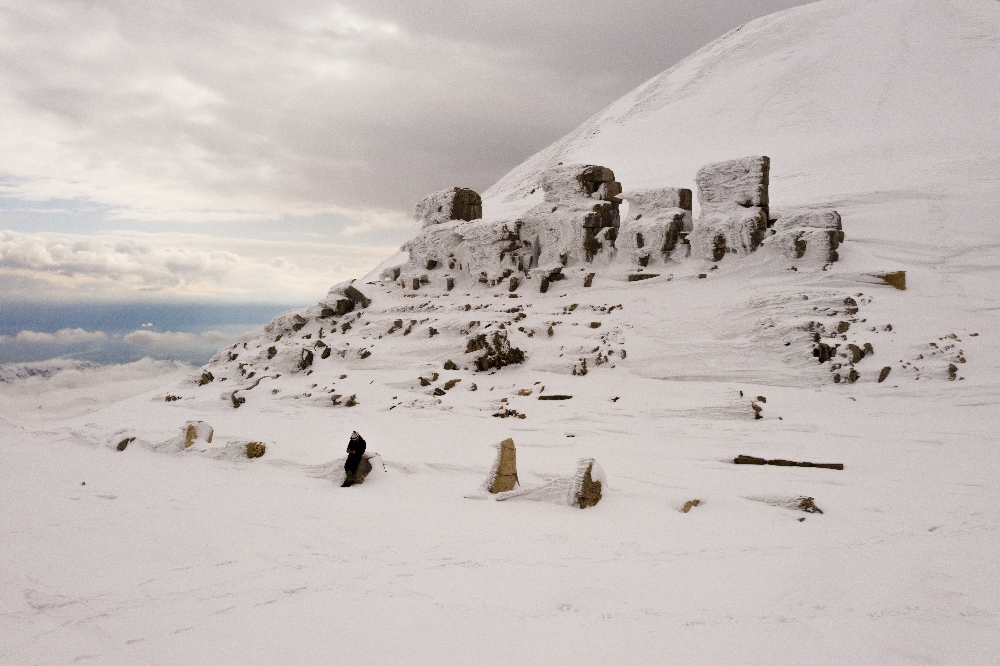 Batı terasındaki heykellerin tamamen kar altında kaldığı, doğu terasındaki heykellerin buz tuttuğu 2 bin 206 metre yükseklikteki Nemrut Dağı’nda muhteşem bir görüntü ortaya çıktı.