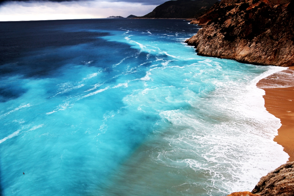 Kaş ilçesinde bulunan Kaputaş’ta denizde yağmurdan sonra oluşan mavi renk armonisi muhteşem bir görüntüye sahne oldu. Bölgede etkili olan yağış nedeniyle kanyondan akan yağmur suları Kaputaş Köprüsünün altından geçerek denize ulaştı. Bu anlarda denizin mavi rengi turkuaz başta olmak üzere, çeşitli tonlara dönüştü. Denizin altında kaynayan doğal su kaynaklarıyla dağlardan gelen saf doğal suyun buluşması sonucu büyüleyici turkuaz rengin ortaya çıktığı anlaşıldı.