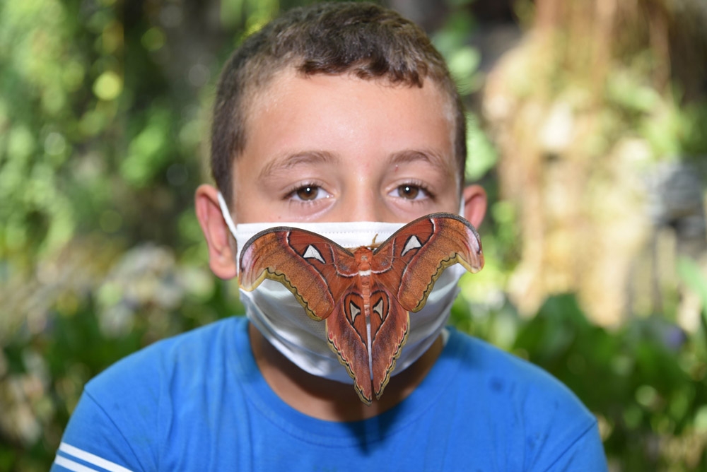 İKİ KARDEŞİN MASKESİNİN ÜZERİNDEKİ “ATLAS” KELEBEĞİ OLDUKÇA MUTLU ETTİ