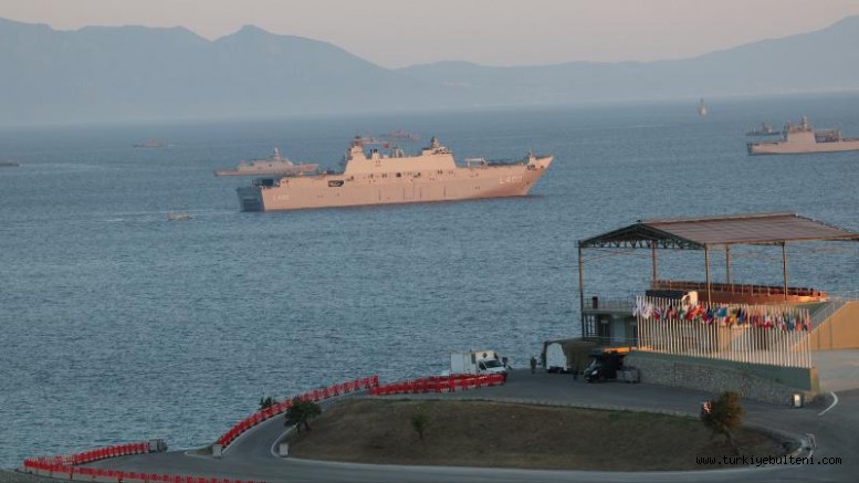 Tatbikat sırasında, yarınki bölümde yer alacak olan TCG Anadolu gemisi de yerini aldı.