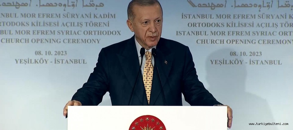 Cumhurbaşkanı Erdoğan, Mor Efrem Süryani Kadim Ortodoks Kilisesi Açılış Töreni'nde önemli açıklamalar yaptı. Cumhurbaşkanı Erdoğan, ''Başkenti Kudüs olan Filistin devletinin varlığı artık ertelenemez'' dedi.