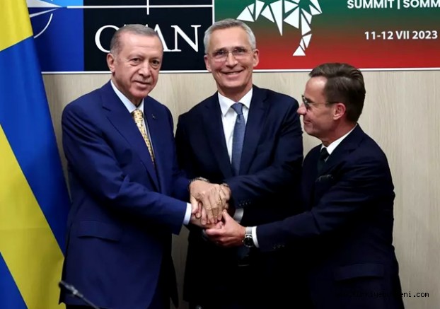 Cumhurbaşkanı Recep Tayyip Erdoğan, NATO Genel Sekreteri Jens Stoltenberg ve İsveç Başbakanı Ulf Kristersson üçlü zirvede bir araya geldi. Toplantının ana gündem maddesi İsveç'in NATO üyeliği oldu. İsveç, Türkiye'nin Avrupa Birliği sürecine güçlü destek taahhüdünde bulunurken Türkiye de İsveç'in katılım protokolünü mümkün olan en kısa sürede TBMM'ye sevk etmeyi ve onaylanmasını sağlamayı kabul etti. Üçlü toplantıda altı maddelik bir bildiri üzerinde anlaşıldı. NATO kararı olmayan ve İsveç ile Türkiye'yi bağlayan bildiride yer alan 6 koşul şöyle: