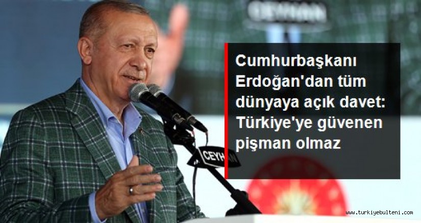 Cumhurbaşkanı Erdoğan "Türkiye'ye güvenip yatırım yapan kimse pişman olmaz. Ülkemizdeki ve dünyadaki tüm yatırımcıları küresel üretim ve lojistik sisteminin yeni baştan kurulduğu şu dönemde Türkiye'nin kendilerine sunduğu imkan ve fırsatları değerlendirmeye davet ediyorum" dedi.