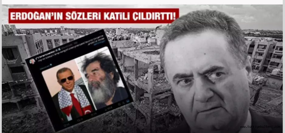 "İsrail Dışişleri Bakanı Israel Katz, Türk medyasının Türkiye liderini İsrail'i işgal etmekle tehdit etmesinin ardından X hesabı üzerinden yaptığı paylaşımda Türkiye Cumhurbaşkanı Recep Tayyip Erdoğan'ın "Saddam Hüseyin'in izinden gittiğini ve İsrail'e saldırmakla tehdit ettiğini" yazdı.