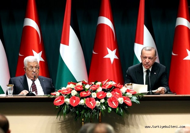 Burada sayın Cumhurbaşkanı Recep Tayyip Erdoğan'a Filistin halkının yanında durması ve değişmez tutumundan dolayı en içten teşekkürlerimi ifade etmek isterim. Türkiye Cumhuriyeti ve kurumlarının her alanda Filistin halkının ve devletinin yanında yer aldığını ve uluslararası arenada desteklediğini bilmekteyiz.