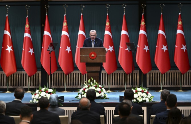 Cumhurbaşkanı Recep Tayyip Erdoğan, Cumhurbaşkanlığı Külliyesi'nde Kabine Toplantısı'nın ardından açıklamalarda bulundu.