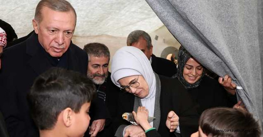 Cumhurbaşkanı Erdoğan, eşi Emine Erdoğan ile birlikte çadır kentte kalan depremzede vatandaşları ziyaret etti.
