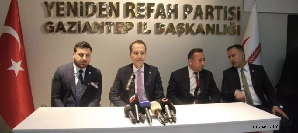Yeniden Refah Partisi Genel Başkanı Fatih Erbakan, partisinin Gaziantep il başkanlığını ziyaret etti. Fatih Erbakan düzenlenen basın toplantısında açıklamalarda bulundu. Depremle ilgili konuşan Erbakan, Doğal Afetlerle Mücadele Bakanlığı'nın kurulması gerektiğini belirterek Türkiye’nin afetlere hazırlıklı olması gerektiğini söyledi.