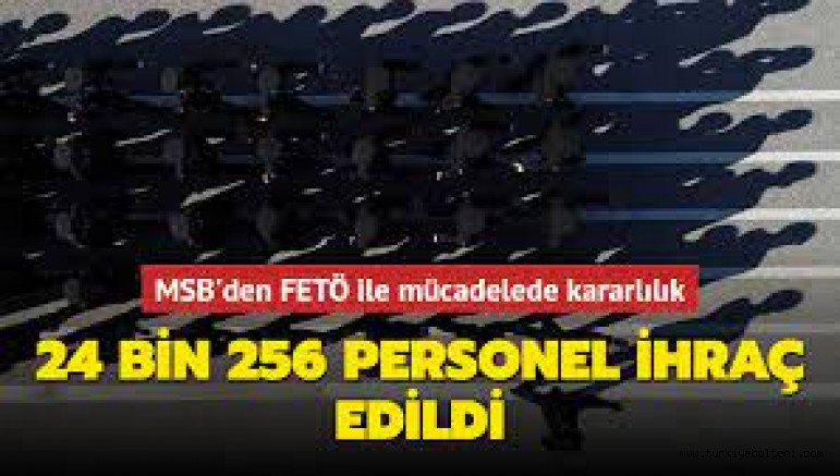 Milli Savunma Bakanlığının Fetullahçı Terör Örgütü (FETÖ) ile devam eden mücadelesinde bugüne kadar 150'si general 24 bin 256 personel ihraç edildi. OHAL'in kaldırılmasından bu yana Milli Savunma Bakanı Hulusi Akar'ın onayıyla ihraç edilenlerin sayısı ise 9 bin 360 oldu.